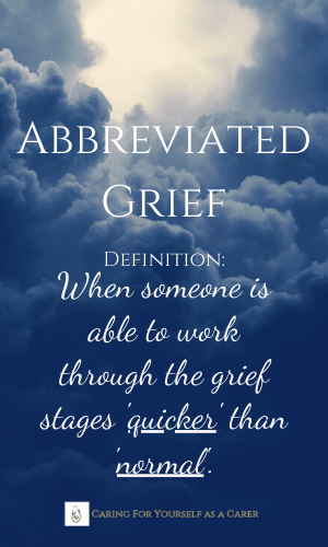 When I wrote about anticipatory grief – something my friend calls ‘living grief’ I heard another interesting term: The abbreviated grief definition.